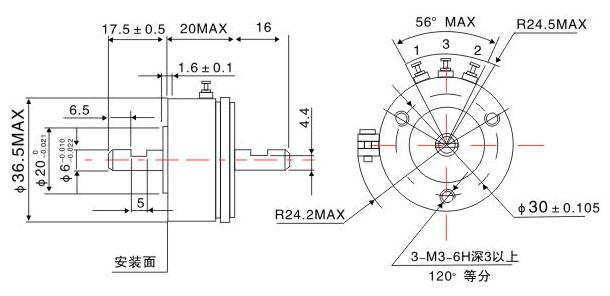 | 1; 2; 3; 5KΩ | ≤1%~0.1% | 360° | 180° 345° | 50x106 |