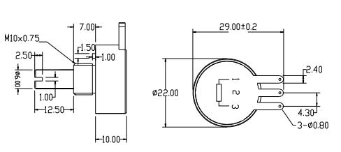 | 1; 2; 3; 5KΩ | ≤1%~0.1% | 360° | 180° 345° | 50x106 |