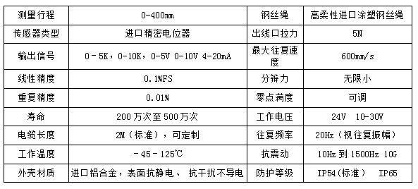 拉绳位移传感器/拉线位移传感器是由光电采集部分(增量编码器、绝对值编码器、角位移传感器、精密电阻等)和一组机械外壳装置组成。外壳使用铝合金材料,外表面电脉处理,抗干扰性,坚硬耐磨;可抗压、防震,适应高温、高压、等各种恶劣的使用场合;收线为原装进口不锈钢钢丝绳,该钢丝绳外层涂塑,抗腐蚀能力强、强度大、无伸缩;绕线弹簧机构采用进口不锈钢材料生产,抗腐蚀,收线稳定。使其成为一款结构紧凑、安装空间尺寸小、测量行程长、方便灵活、具有高精度测量的工控优选位移传感器。