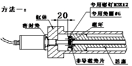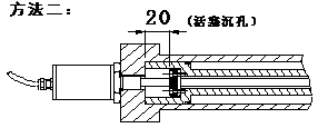 磁尺内置液压缸使用时,其稳定性和精确度直接受到周边磁场环境的影响。若液压缸为导磁材料制造,必须参考图一方法设计,保证磁环与液压缸端面之间保留20mm距离。