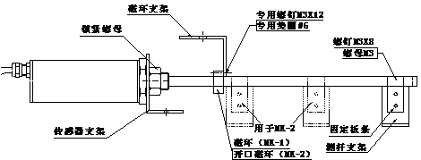 若传感器测量范围在1000mm以下,建议选用MK-1安装附件;若1000mm以上,则选用MK-2安装附件。安装方法如图二所示。
