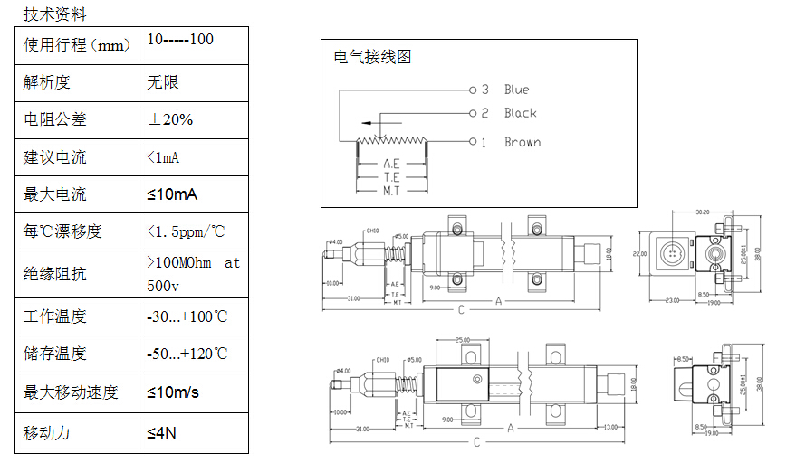 | 使用行程AE | mm | 10 | 25 | 50 | 75 | 100 |