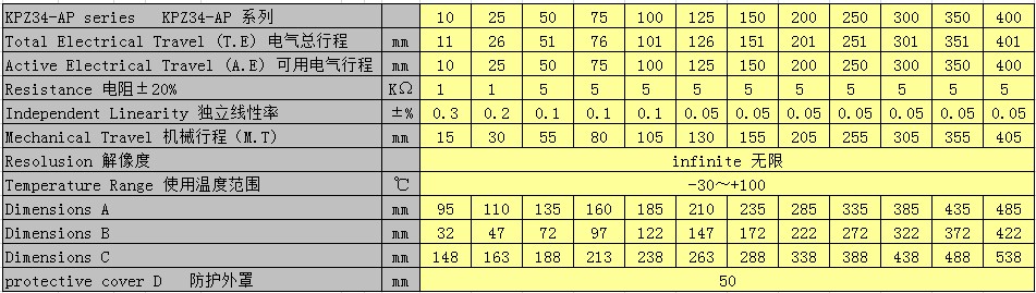 改进技术使连接到电阻轨道(双修刻技术)确保更高的可靠性和线性度,而多触点电刷则有更稳定的输出信号,更能适用于极为恶劣的工作条件。