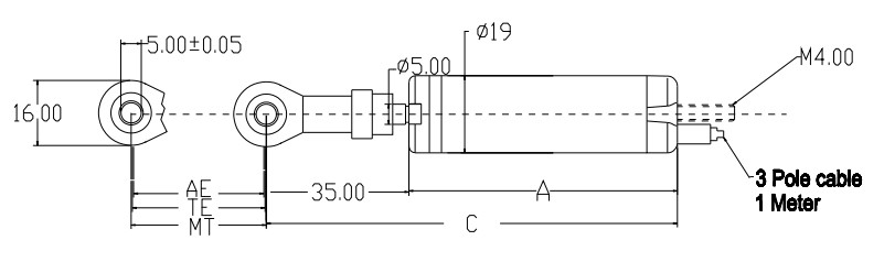 KPM直线位移传感器,采用底部出线的方式,铰接方式安装.