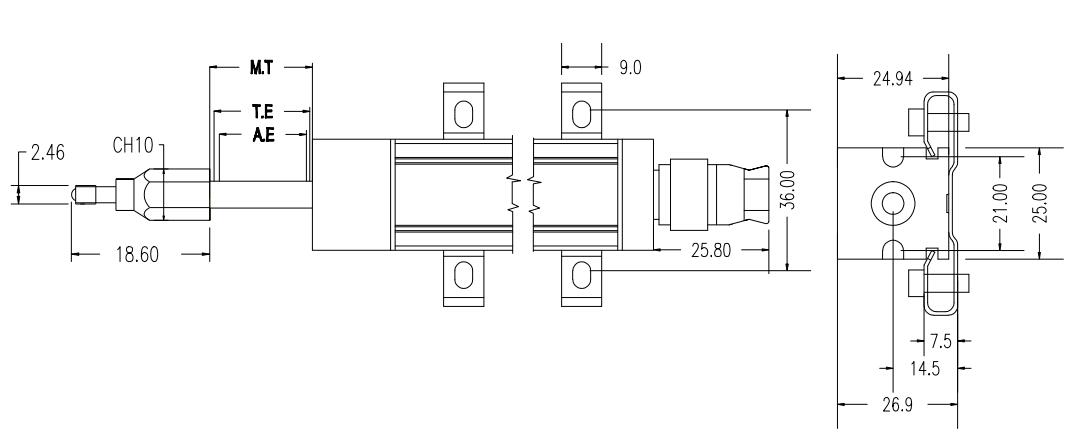3.弹簧自动复位装置安装在传感器内部,故外形尺寸不变。原始状态下,随动杆伸致最外,故外形尺寸保持原来不变。 也可以采用在拉杆上增加弹簧的方法,达到自回复的效果。