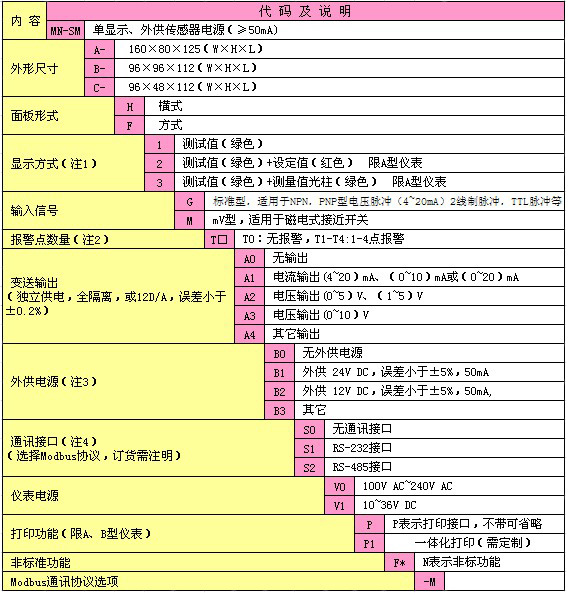 注2:C型仪表限制为2点,A、B型限制为4点。