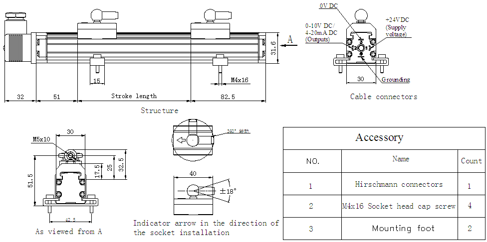 MNFV series Magnetostrictive LinearDisplacement Sensor (short for MNFV) is a contactless linear position sensor providing high accurate absolute position measurement of displacements. Contactless ensing with highest durability, the extremely robust sensor, ideal for continuous operation under harshest industrial conditions is completely modular in mechanic and electronic design. Absolute output, no periodic re-calibration and maintenance, no need to re-zero. MNFV series of Magnetostrictive Linear-Displacement Sensor can support variety of signal outputs as voltage,current,pulse,SSI,ModBus,Profibus bus, and supports single sensor measuring two coaxial position. Magnetostrictive linear displacement sensor can completely replace electronic device or encoder used in injection molding machines moving parts, injection, ejection precise positioning.