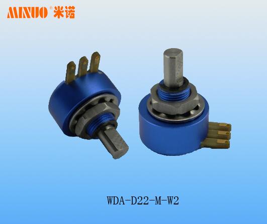 Rotary potentiometer of WDA-D22-M-W4 is used for the measurement of angle. With the help of conductive plastic resistance track and multi-fingered precious metal wipers, the product could run glidingly with low noise output.